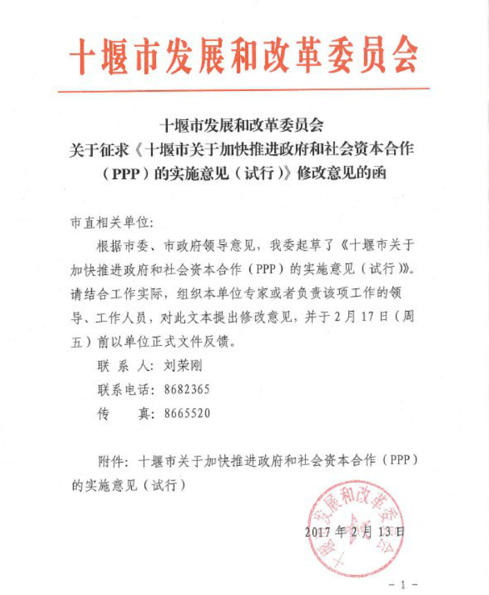 關(guān)于征求《十堰市關(guān)于加快推進(jìn)政府和社會(huì)資本合作(PPP)的實(shí)施意見(jiàn)(試行)》修改意見(jiàn)的函