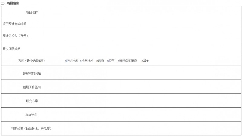 1、新型冠狀病毒肺炎快速檢測技術,可及時推廣應用的項目,優先支持可快速檢測的居家使用測試紙、測試條、新型冠狀病毒肺炎的治療藥品、疫苗,可及時推廣應用的項目,要求三個月以內能夠形成應急有用、投入臨床的方案、產品等;