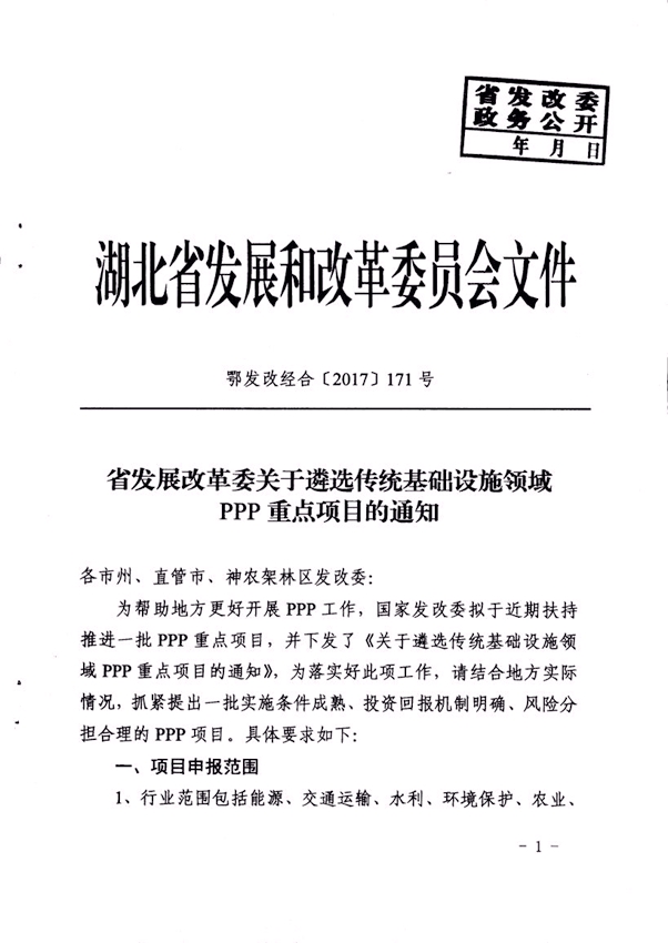 省發改委關于遴選傳統基礎設施領域PPP重點項目的通知