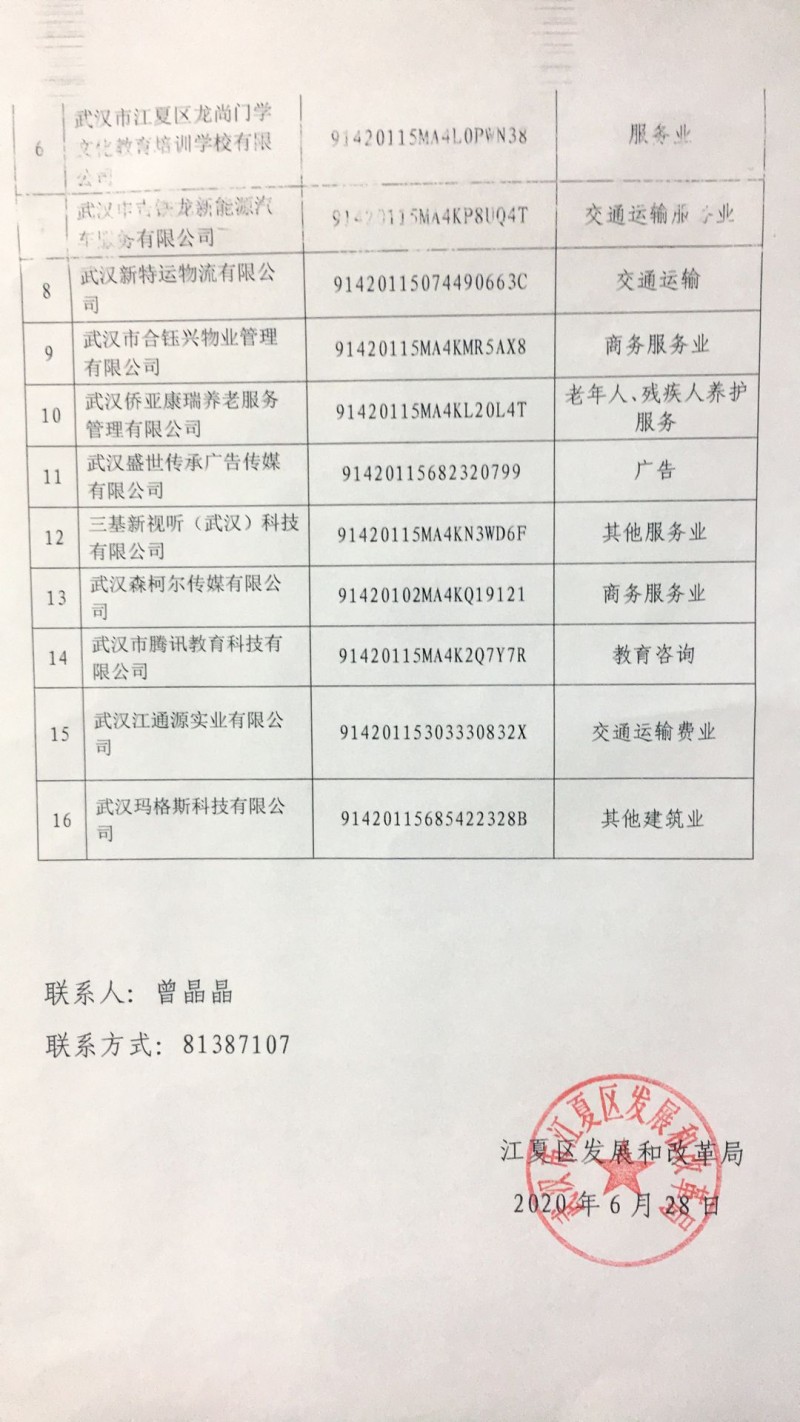 關于2019年度江夏區(qū)服務業(yè)“小進規(guī)”入圍企業(yè)名單的公式